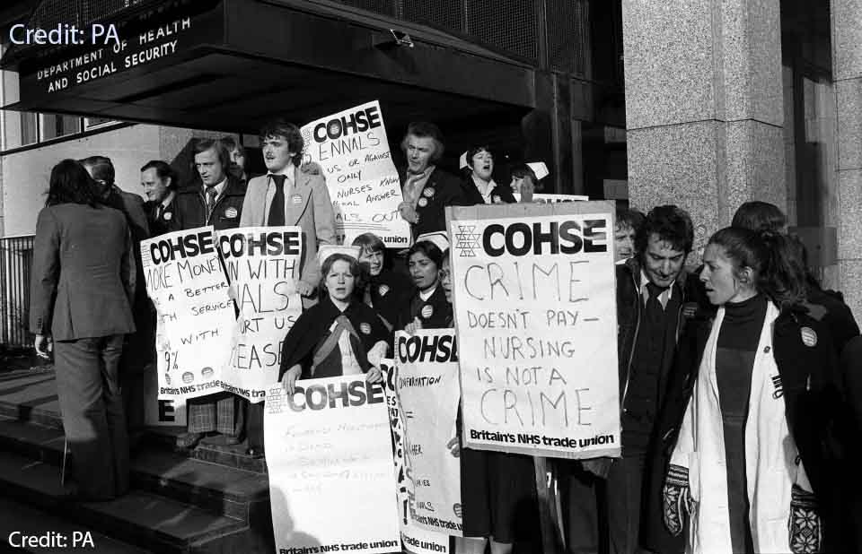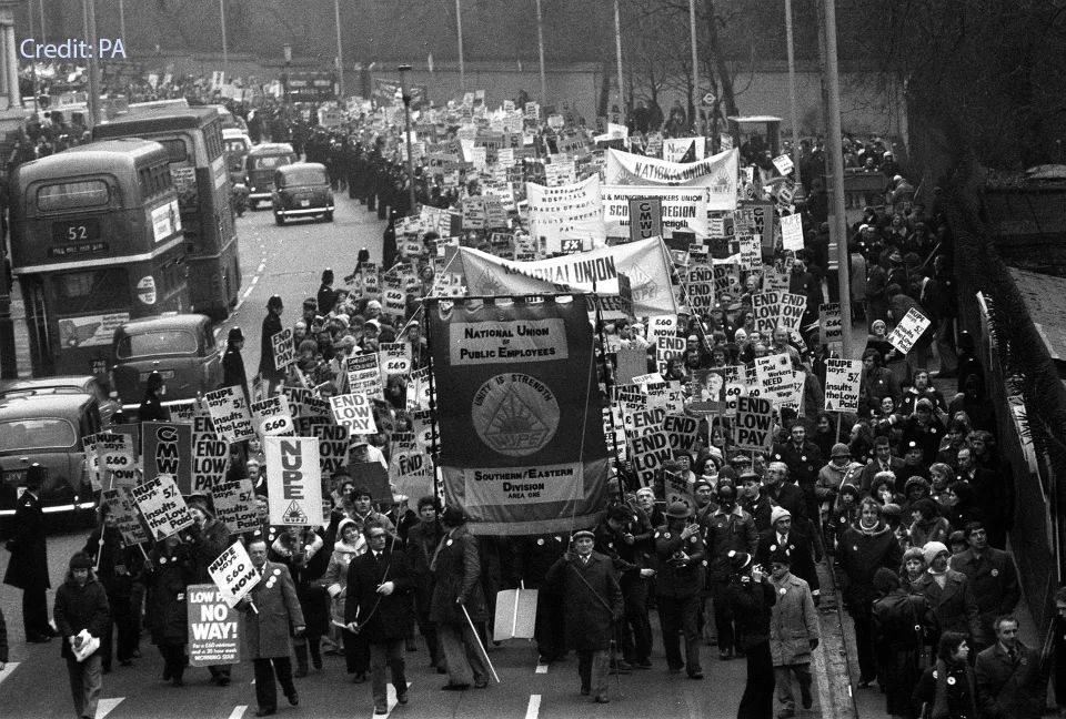 These scenes look eerily similar to that of the 1970s. With picket lines stretching outside workplaces and protests effecting the government.
