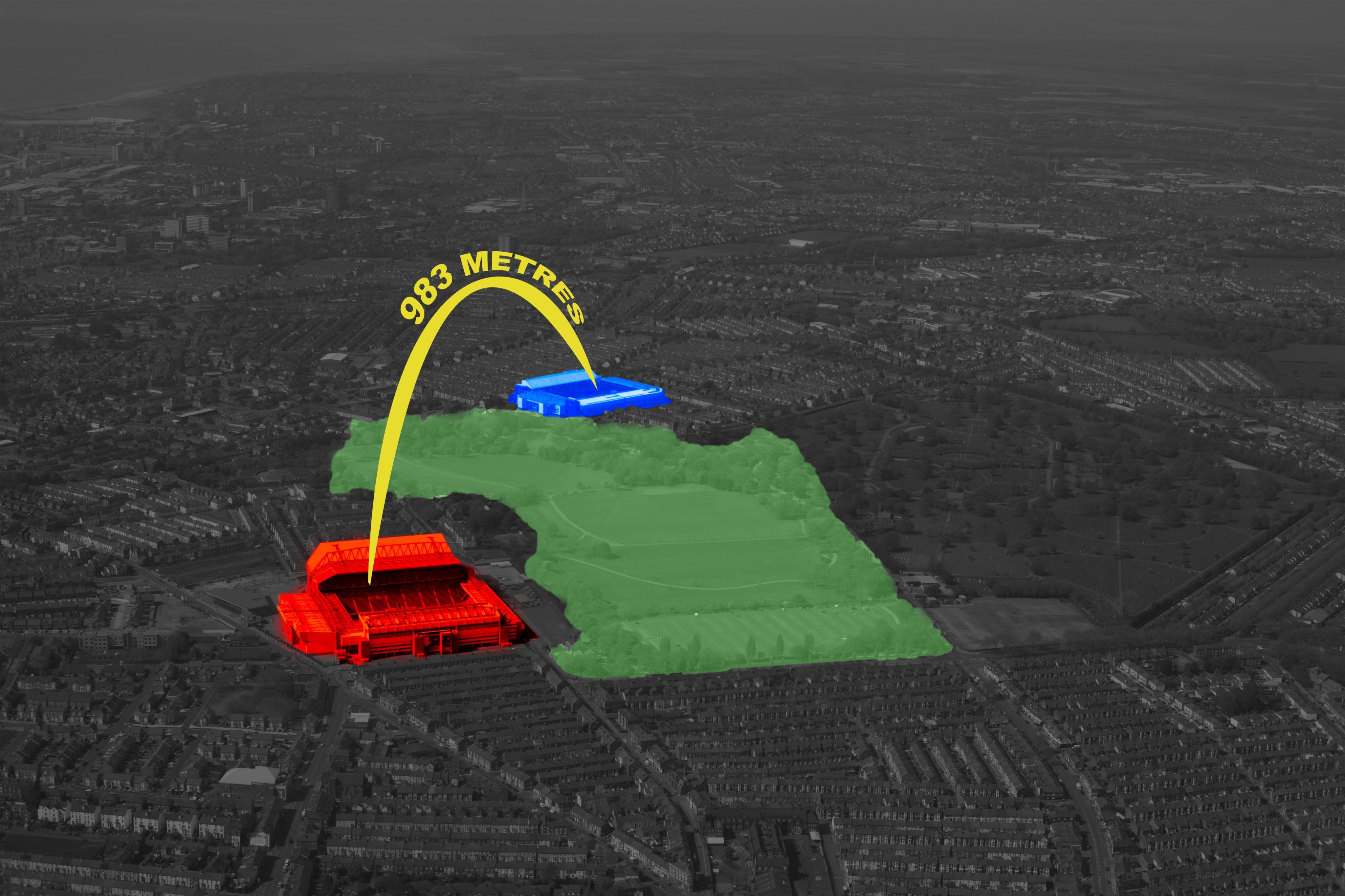 Stanley park remains the only barrier stopping the two grounds from rubbing shoulders, with a distance of 0.61 miles apart. This makes the gap between the two clubs on Merseyside the third closest rivalry by distance in Britain.
